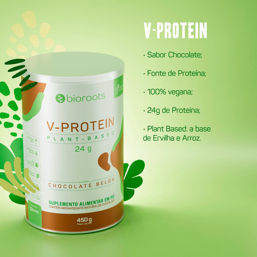 Proteína V-protein Plant Based Chocolate Belga 450g Bioroots