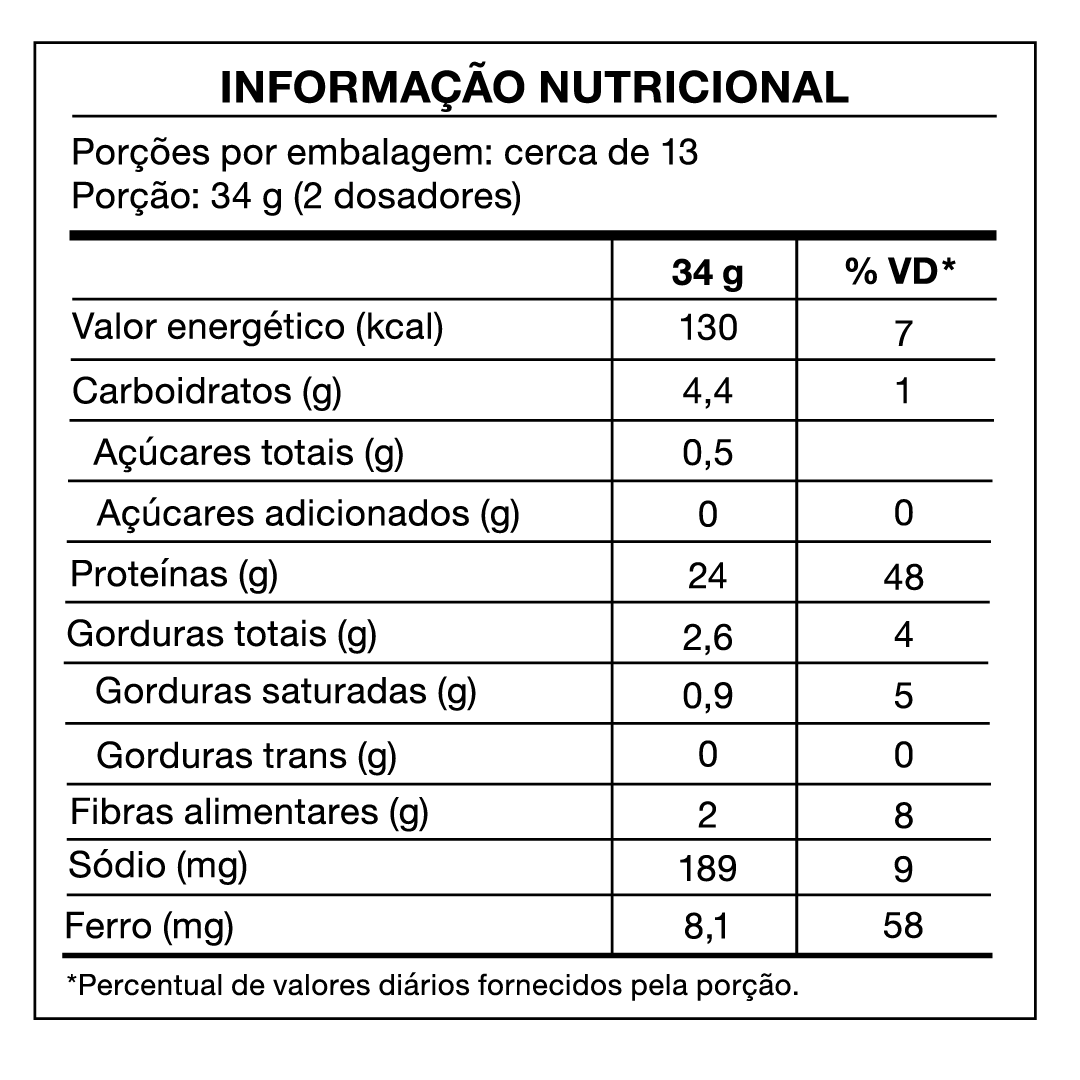 Em uma fórmula limpa e saudável, nossa proteína é adoçada com Stevia. Cada detalhe foi pensado para uma suplementação rica em proteína e de fácil digestão. Também contém ferro.